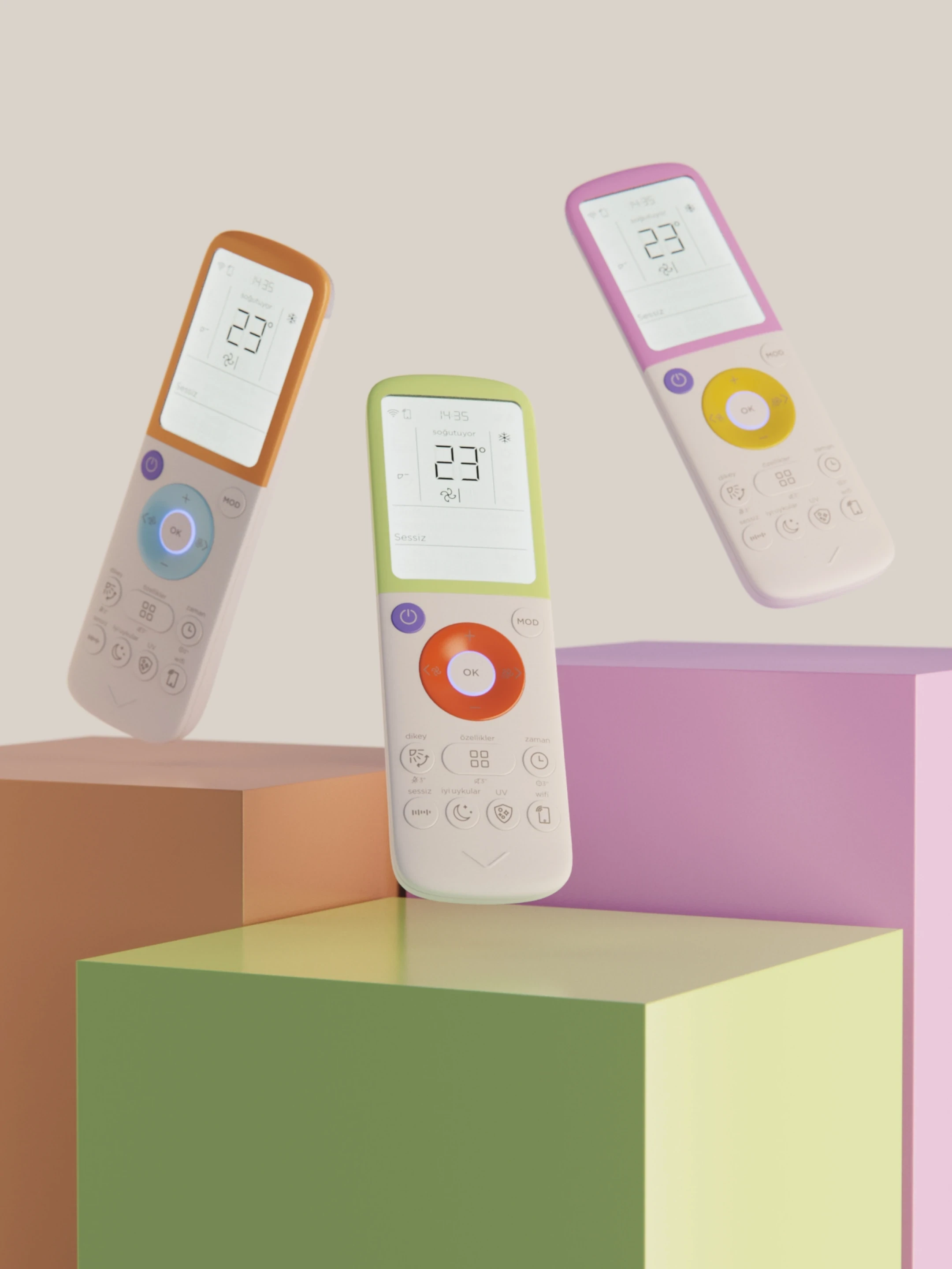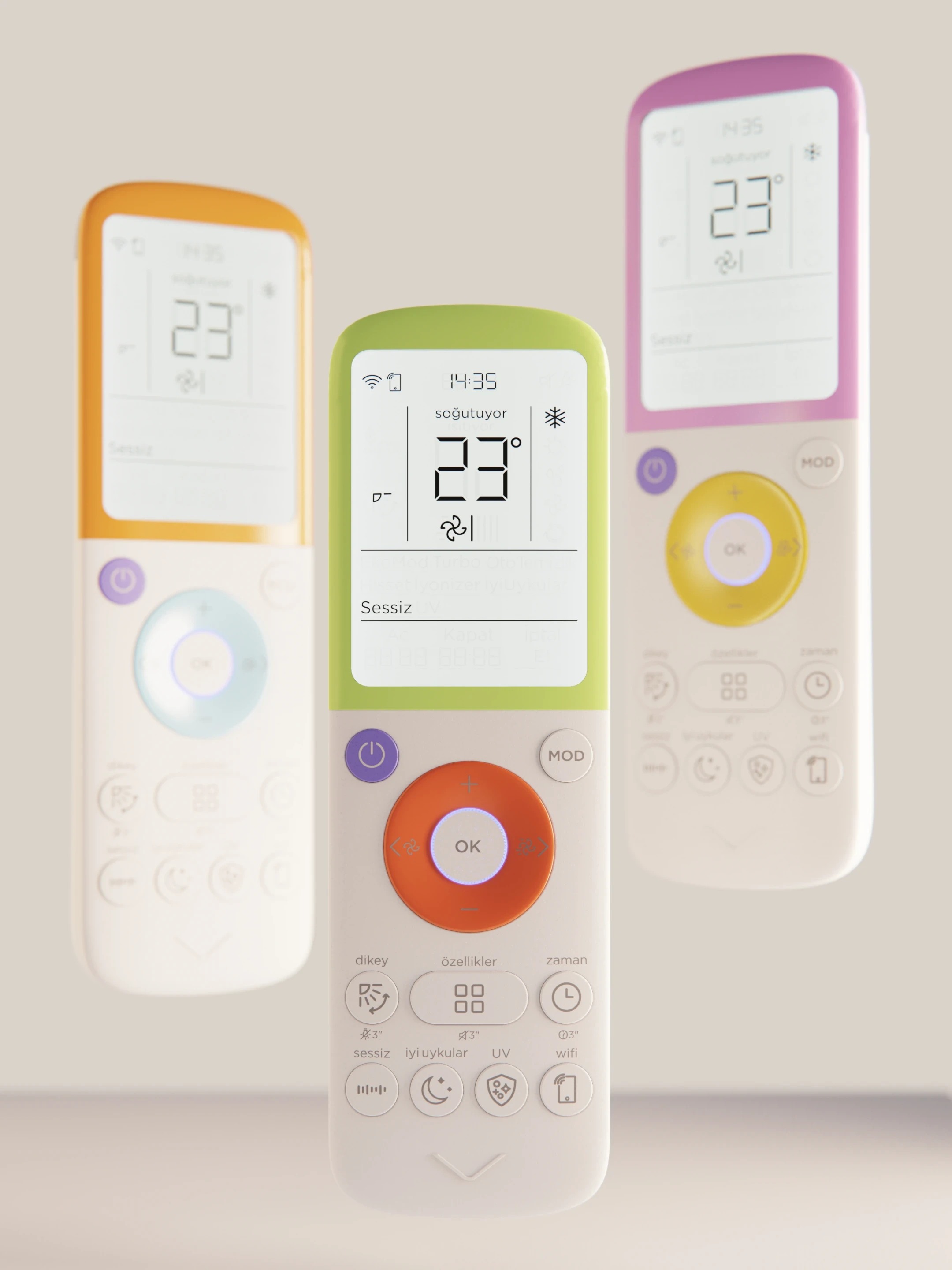 Project showcases the product design process of an AC remote control developed for Vestel. The primary focus was to address both user needs and market demands by simplifying the user interface, clarifying function definitions, and organizing buttons hierarchically to improve usability. The design aimed to reduce the frustration often associated with traditional remotes, while also enhancing perceived quality and precision through refined details, material choices, and tactile feedback. Comprehensive research, competitor analysis, and user testing informed the final outcome—delivering an intuitive, efficient, and visually appealing remote control solution tailored for the modern home appliance market.