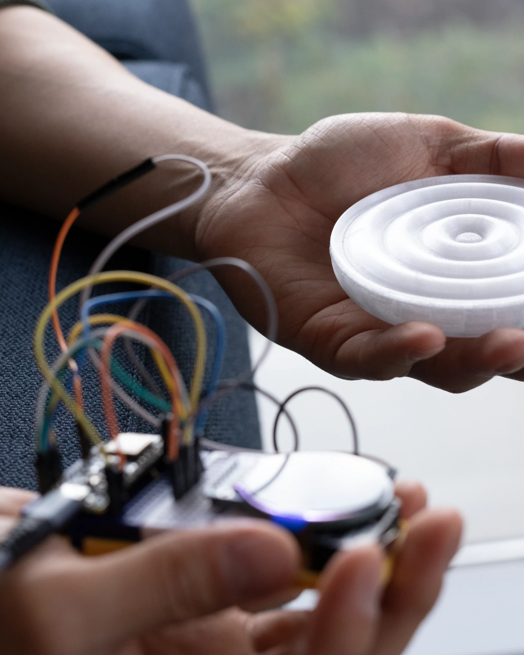 Cognitive Bloom is imagined as a virtual living system that supports reflection, connection, and critical thinking. Data is translated into a garden-like environment, where visual cues such as leaves, buds, and blooms represent different states of mental wellbeing. Complex information is made easier to understand through an ambient display. The project is formed by two connected devices, the Pond and the Garden, which encourage daily reflection. Over time, self-awareness, values, and relationships are intended to be supported through steady care and attention.