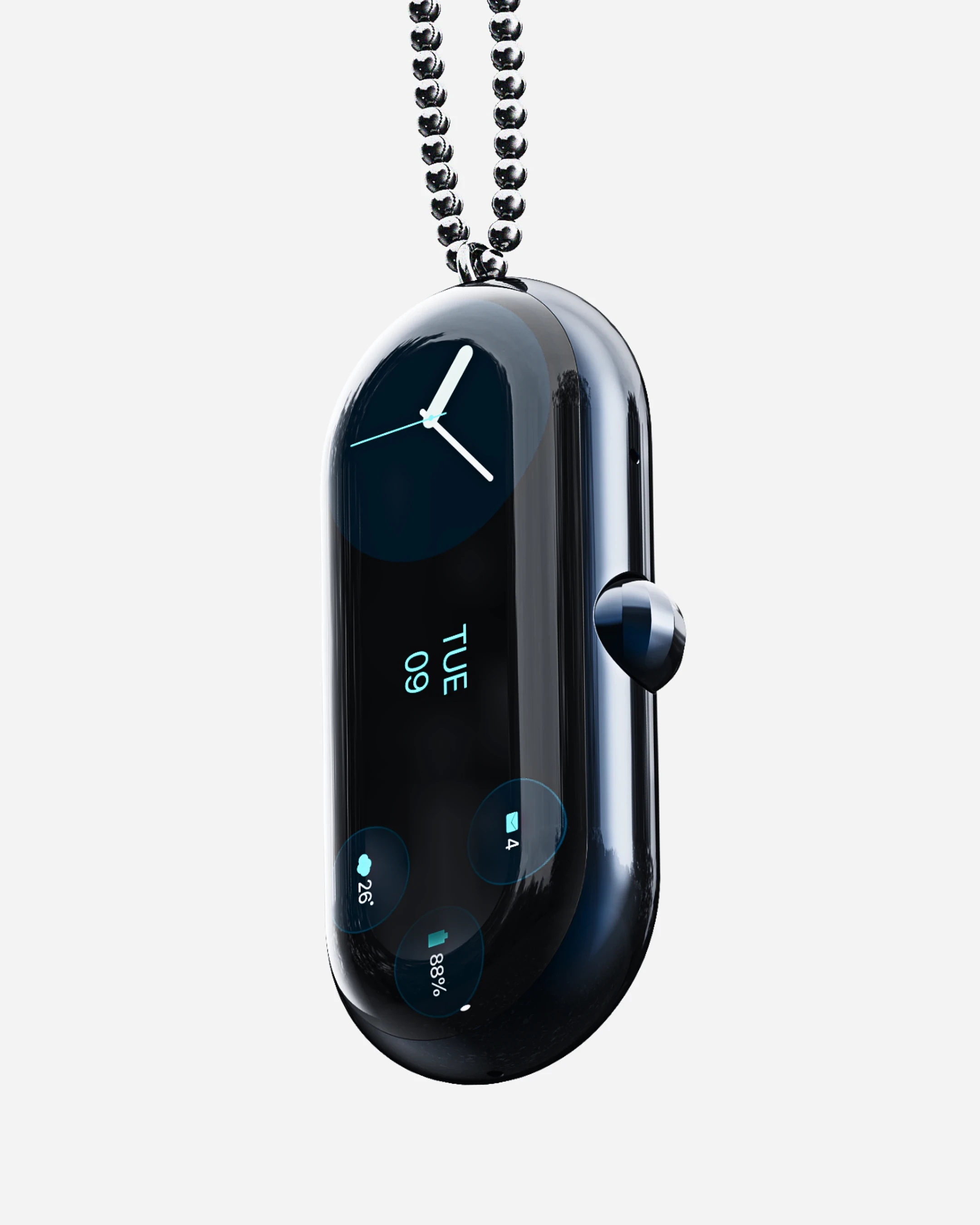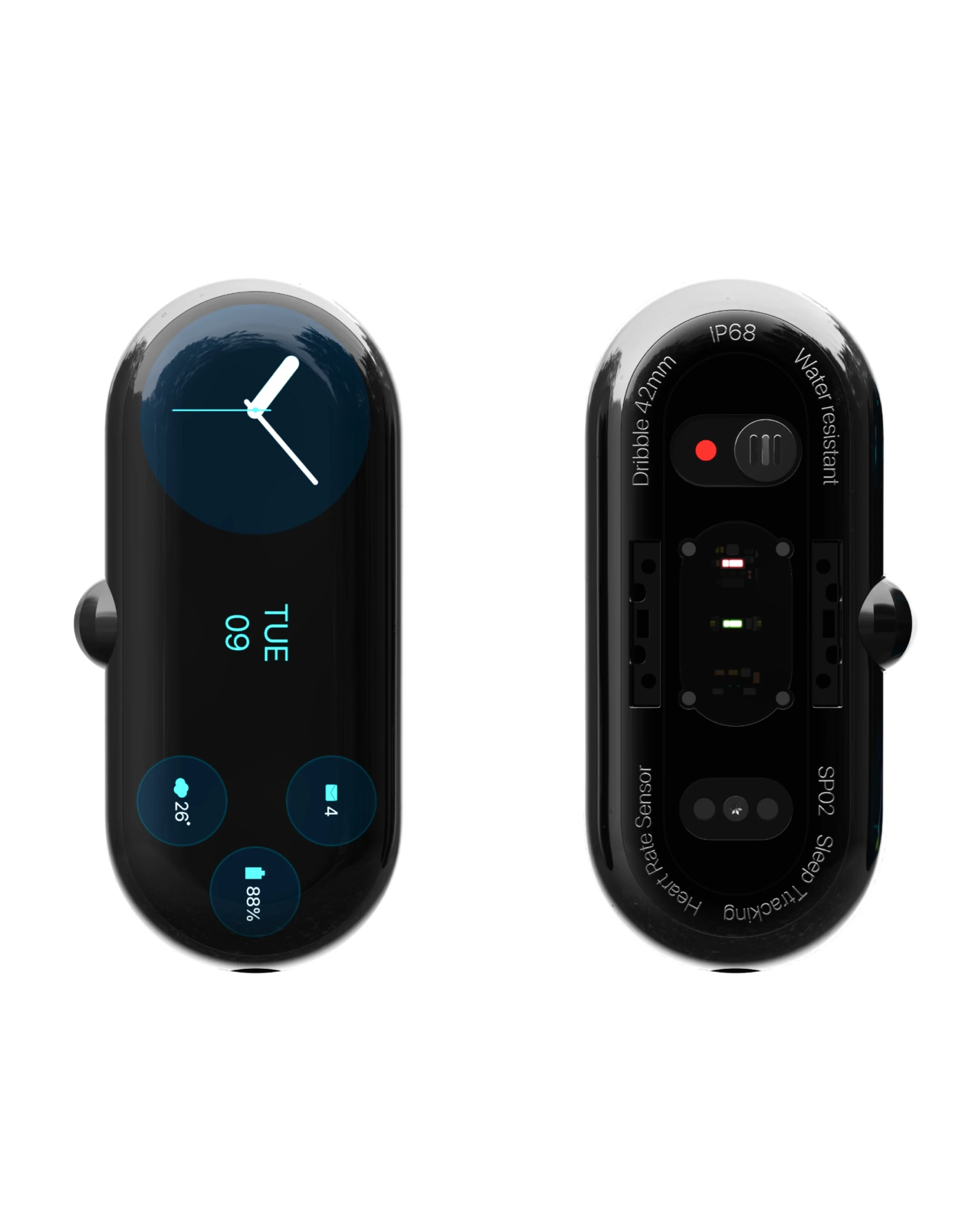 Dribble® is introduced as a wearable input device that rethinks how people interact with technology. Composed of a lip motion sensor, a ring module, and a smart ball, it enables discreet control without screens or visible gestures. Subtle lip shapes and finger movements are translated into digital input, reducing the need for typing or voice commands in public. Its polished aluminum body and circular forms create a jewelry-like presence, designed to feel natural when worn as a ring or necklace. The concept explores calm, hands-free interaction for everyday use.