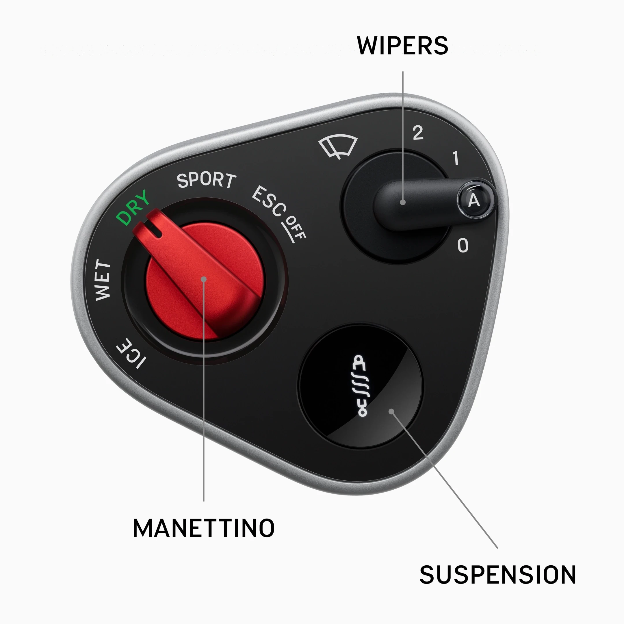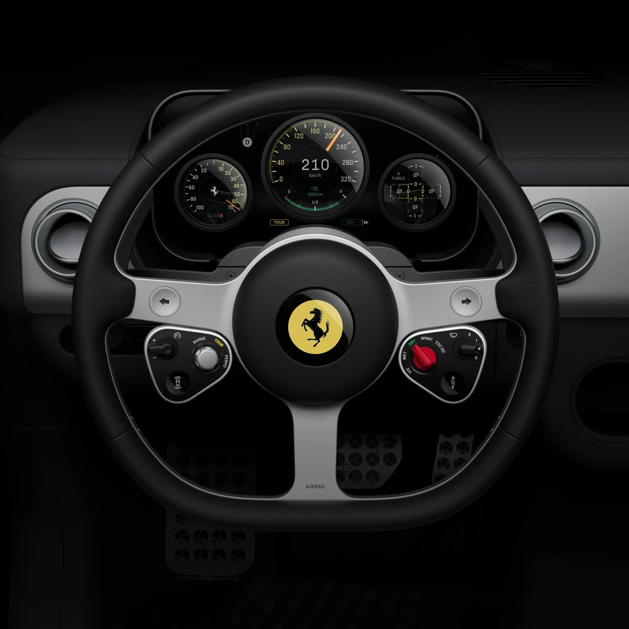 The interior of the first electric Ferrari, the Luce, has been revealed. The design was created by LoveFrom, led by Jony Ive and Marc Newson, in collaboration with Ferrari. A screen-heavy aesthetic was avoided; instead, physical buttons and tactile controls are prioritized. Recycled aluminum is used for the steering wheel, and the instrument cluster is comprised of layered OLED displays with a physical needle. A central screen is mounted on a pivoting joint. The car is started with a glass key featuring an E Ink display. The exterior will be shown in May 2026