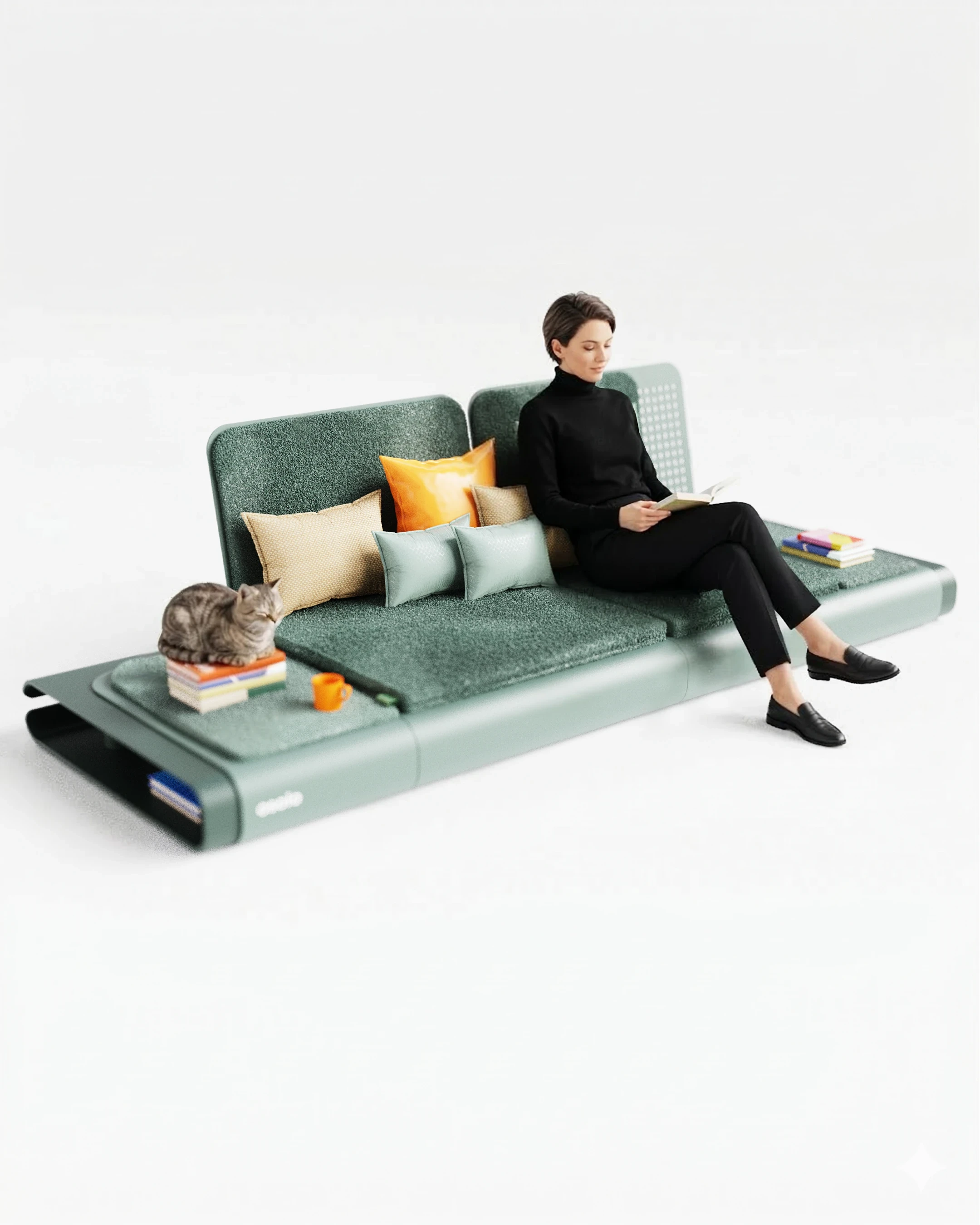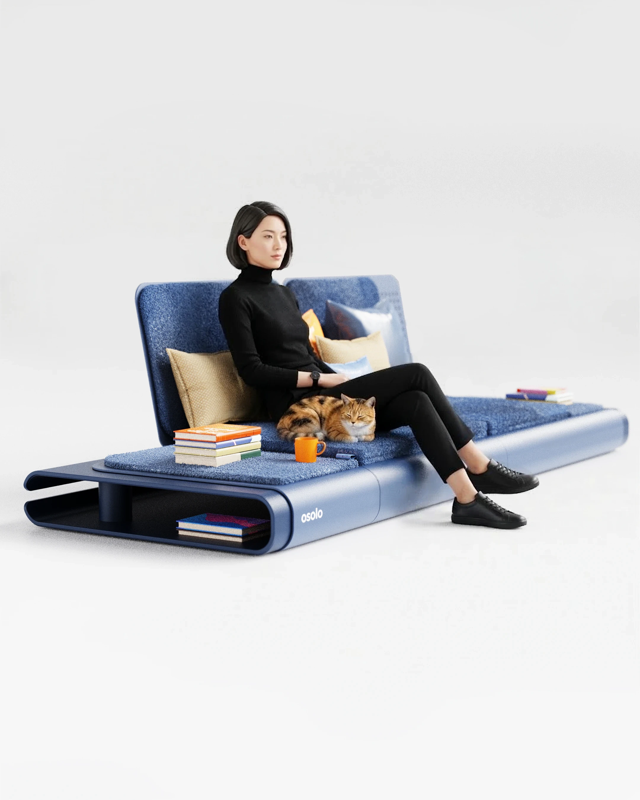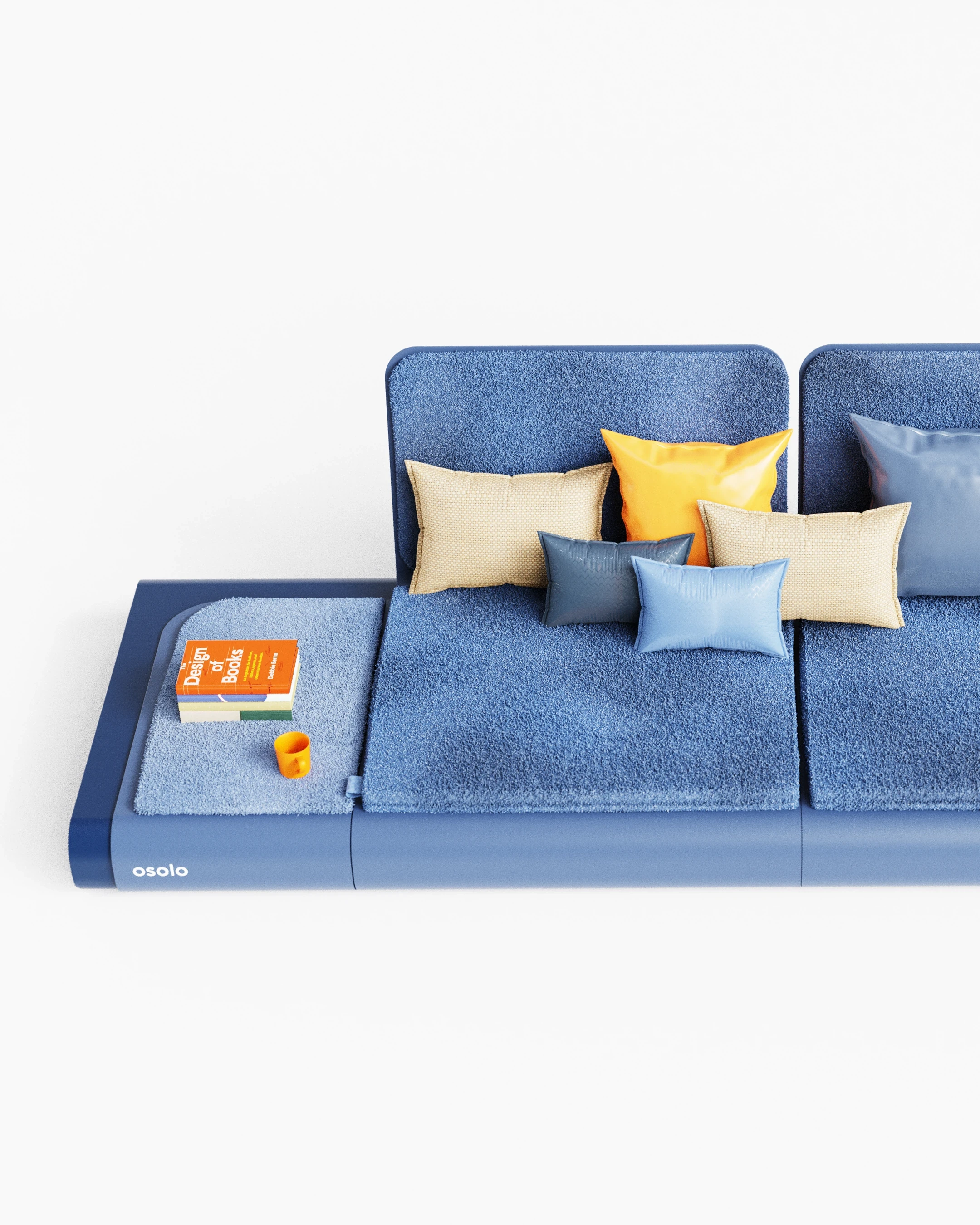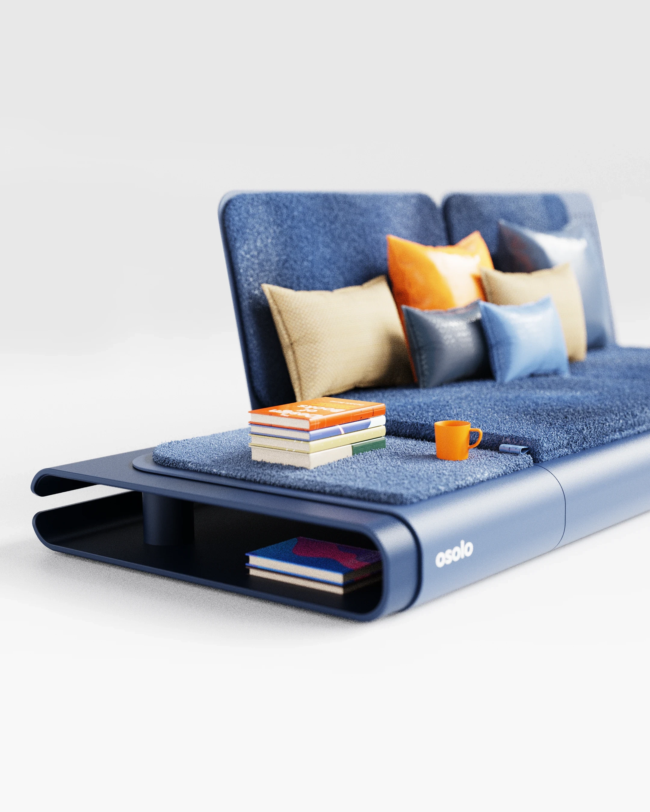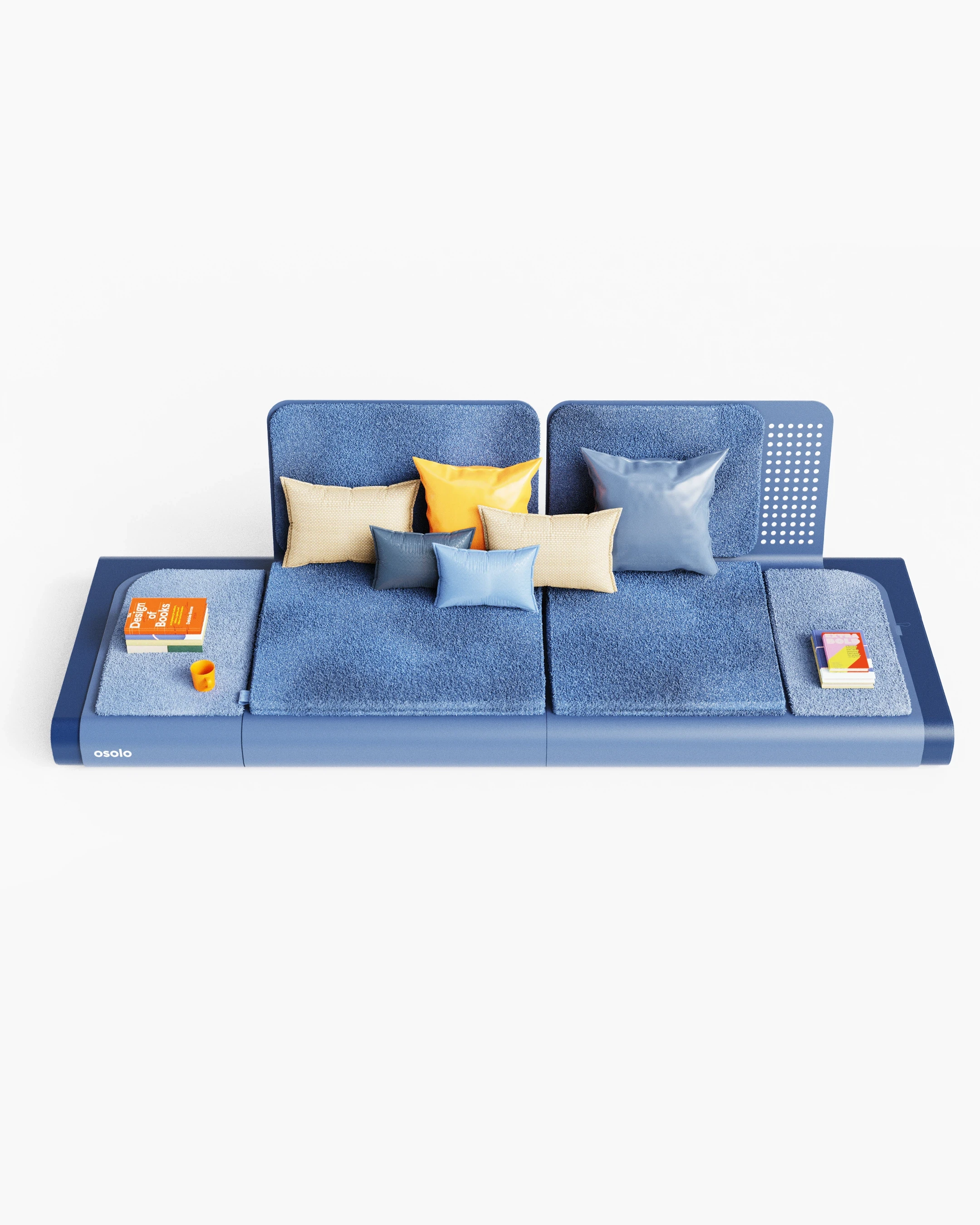 The Osolo seating system was developed as a continuation of a previously established design language, utilizing a single-piece folded metal body. This metal structure is used as both the primary support and the architectural platform for the unit. Open storage for books and small objects is provided by the hollow volume within the frame. A linear, low profile is created, influenced by traditional seating cultures. Different configurations are made possible through modular cushions and independent backrest elements. Multiple modules can be connected side by side, allowing the system to function as either a single seat or an extended arrangement.