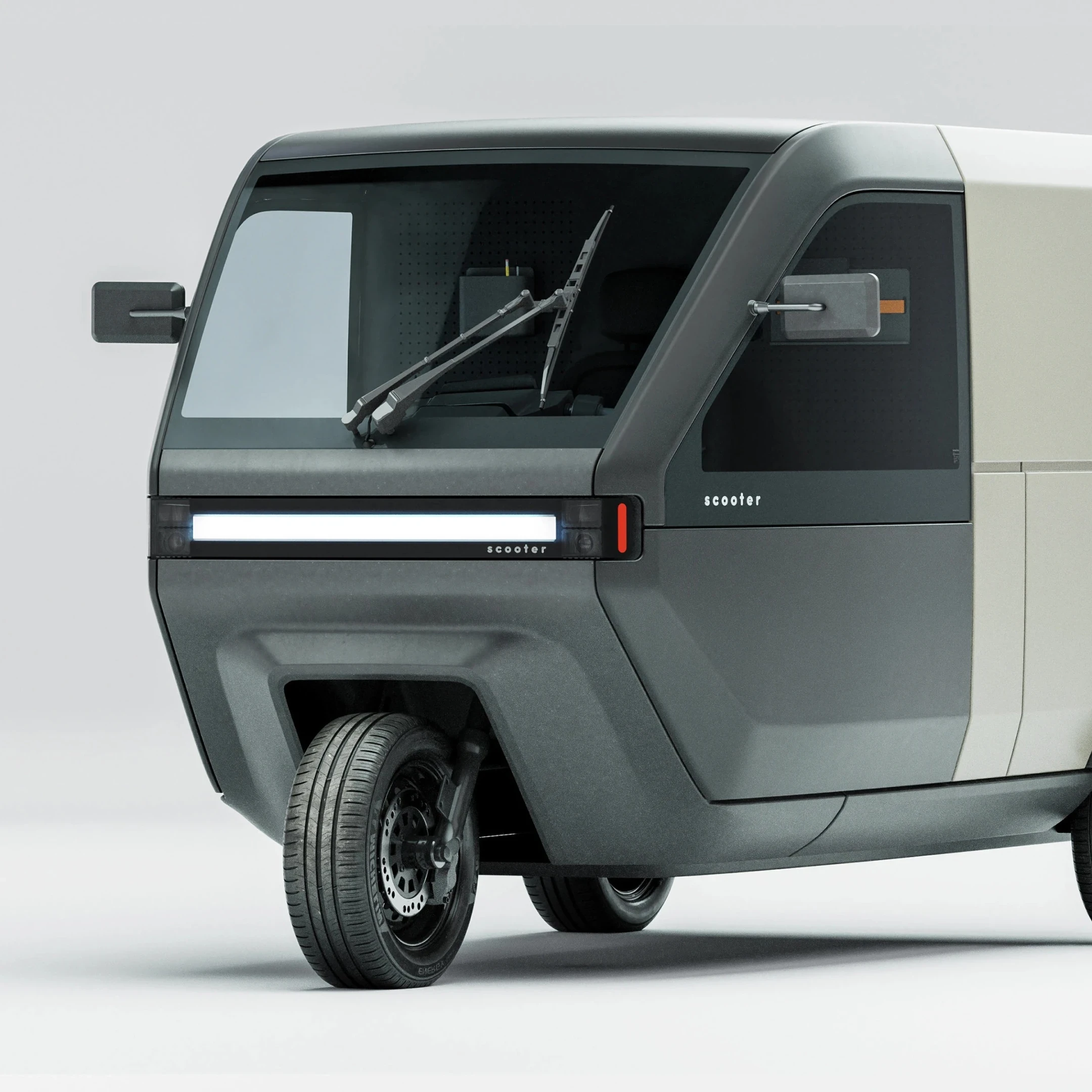 Scooter P Two is presented as a last-mile micro mobility solution designed for dense modern cities. Compact in overall footprint, the vehicle is structured to maximize interior space for a more comfortable ride. The concept focuses on efficient urban movement, addressing congestion and short-distance travel needs. By balancing small exterior dimensions with practical interior layout, the design aims to provide a space-smart alternative for everyday commuting in mega cities.