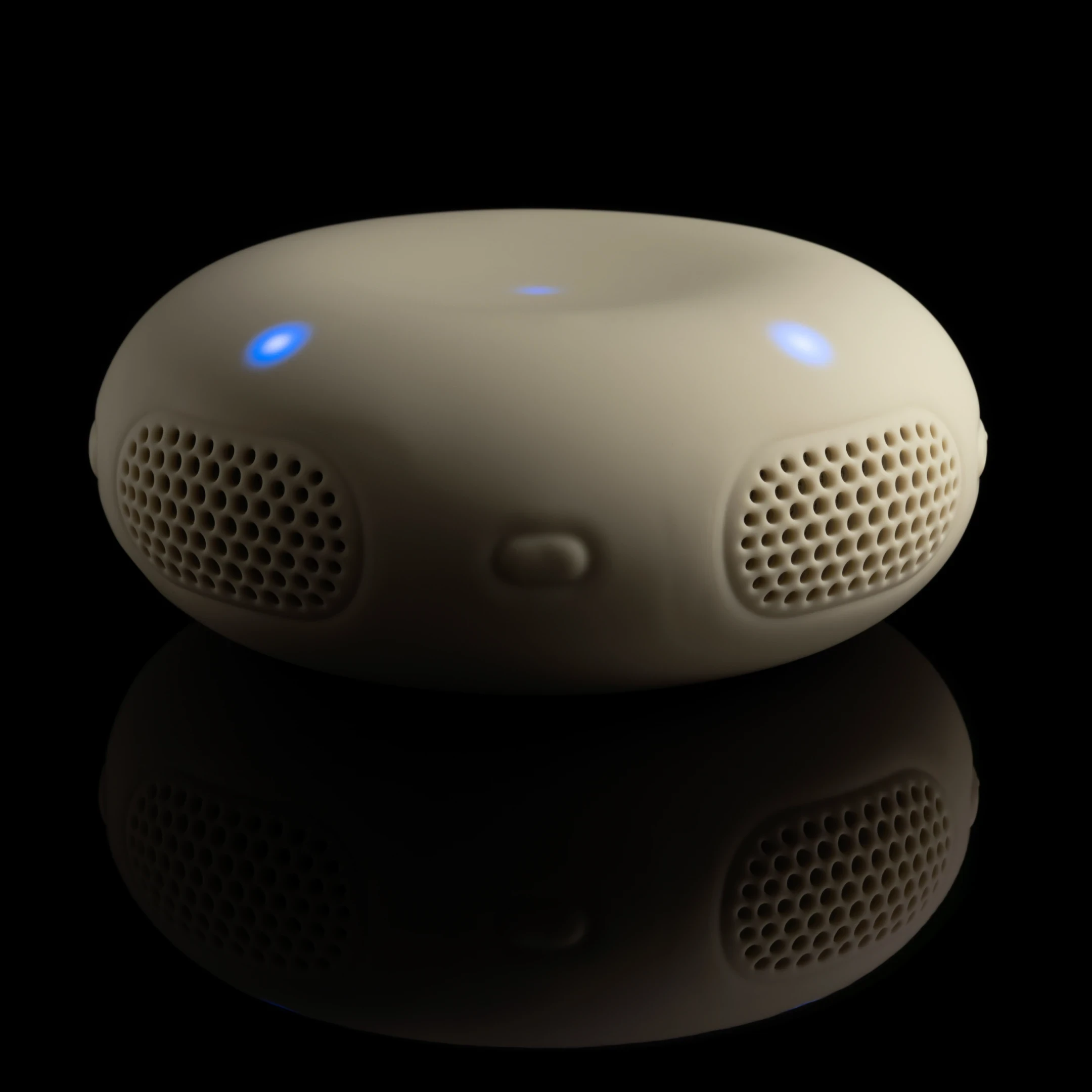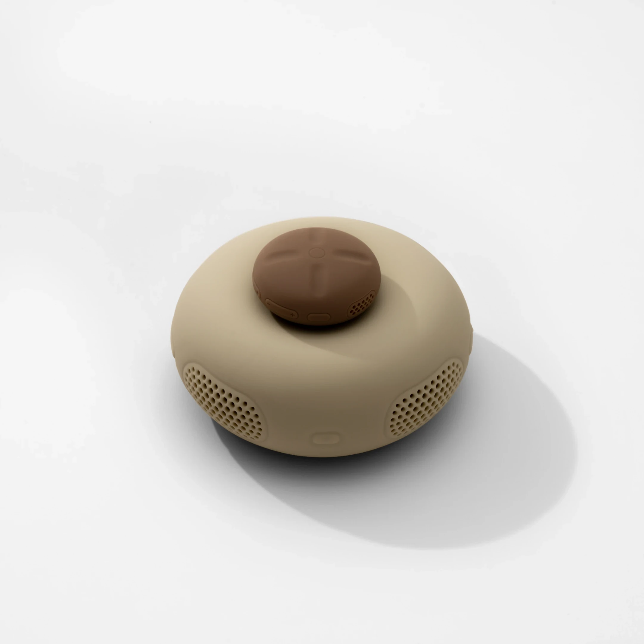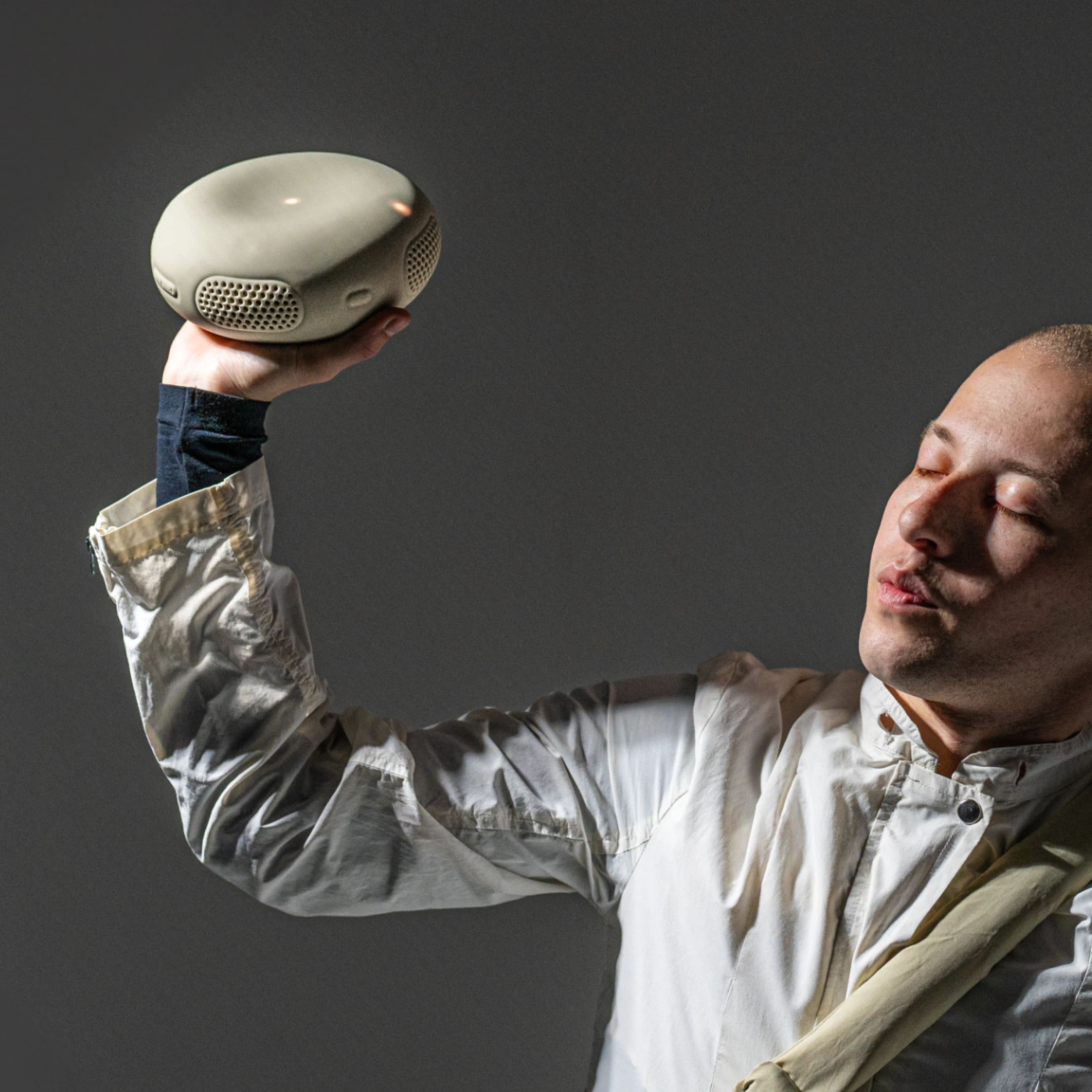 A portable Bluetooth speaker is introduced with a soft, seamless form and capacitive controls. Built to store music offline, it allows listening anywhere without needing a phone. Its ultra-loud output is paired with interactive remix features that let users manipulate the tracks they play, shifting the experience from passive listening to active participation. Designed in London, it continues the direction set by the original stemplayer, offering a larger, more powerful, and more capable device for a new generation of music use.